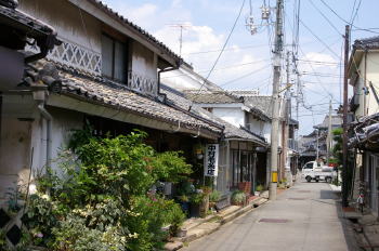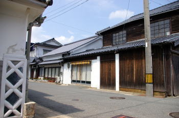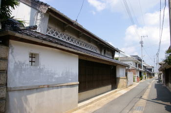 一時期は廻船60隻を保有していたというほどの本格的な港町で、その積荷の多くは近隣の農産物や宇部周辺で採掘される石炭であった。ここでそれらは集結された後上方などに帆送され、それらを取扱う商人の家々が建ち並んだ。 阿知須浦の町並は博覧会に伴う埋立地に陸封されたように残っていた。町の北側を井関川が東西に走り、その河岸にはここに出入りする廻船群の目印であっただろう常夜燈が保存されていた。 港町は細い路地が網目状に交差する、いかにもそれらしい雰囲気を帯びていた。そして漆喰に頑丈に固められた家々があちこちに残っている。特徴的なのは収納庫だけでなく住居自体を土蔵造りとしたいわゆる「店蔵」が多く見られることで、西日本では珍しい町並景観を示していた。しかも、海鼠壁装飾に彩られたその1階部分は、街路に面した両端部で一層その壁厚を増している。これは戸袋で、ここに漆喰で作られた泥戸が収納されているのだそうだ。江戸後期から明治にかけてしばしば大火に襲われたこの阿知須浦では、火事に対する厳重な備えが家々の構造にも現れている。 |