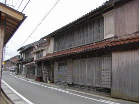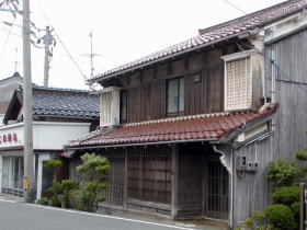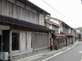 | 海岸線に沿い東西に細長く展開する赤碕の町並 | 門脇家。最近修復された旧家です。煙出しも見えます。 |