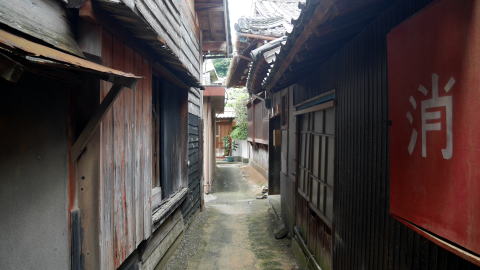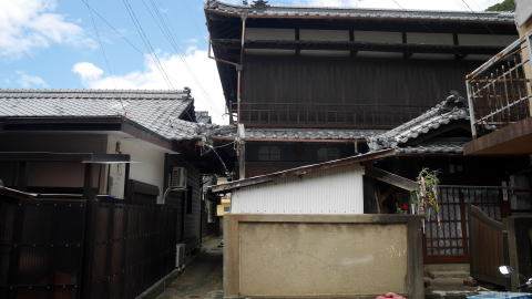 | 明治16年の記録では漁業125とあるが多くは農業との兼業で、他に大工5・鍛冶1・桶工3・染工2・商家12などとあり商工業の発達も見ていたようだ。 高山地区よりも漁村の色合が濃いようで、港には漁船の姿も比較的見られる。宇和島方面からのバスがここまで来ているようで二車線の国道が港沿いに延びているが、そこから集落内に入ると展開するのは人がすれ違えるほどの路地のみであった。板壁に覆われた漁家らしい家が多いが、格子戸を持つ家や土蔵を従えたものなど、半島の先端近くという地であるにもかかわらず財を築いた家々も少なくないように感じた。 小さな集落ではあるが路地と展開する家々の印象度の強さはかなりのもので、珠玉の集落として今後も生活が息づいたものであってほしいものだ。 |
