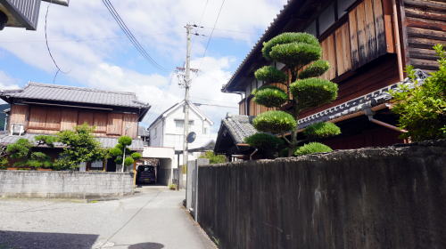 | 右岸一帯には裕福な蜜柑農家を思わせる町並も見られる |