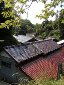 | 共同浴場の一つ御前湯。建物は昭和初期の洋風建築です。 | 温泉街の最奥部より。ここでもやはり主役は石見瓦です。 色彩の微妙な違いが興味深いところ。 |