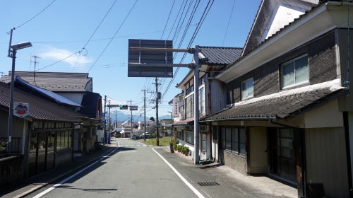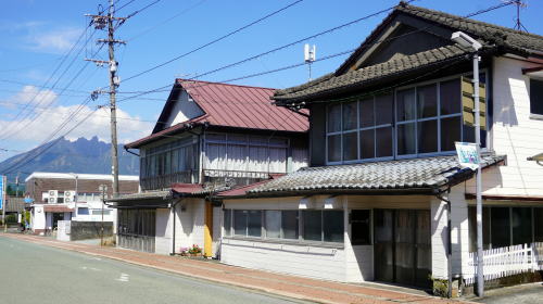 | 阿蘇の外輪山内側の平野部は大きく南北に分れて展開しており、南側は南郷谷と呼ばれ北側よりは比較的観光地化の度合いが低く牧歌的な風景が見られる。 谷間の東端に位置する高森町は東に山を越えると豊後竹田や日向高千穂方面へ向い、それらの地との中継点としても位置づけられている。 中世には阿蘇家統治のもと、高森城が構えられていた。城地は外輪山の一角にあり、三方を山地に囲まれた当地は要害の地として最適な地形を呈しており、国境警備を司った。江戸期に熊本藩領となり加藤清正、次いで細川忠利の支配を受けた。細川氏の折に手永制度という同氏独自の行政制が整備され、その下部組織の会所が高森に置かれた。その後現在の町域東部にある津留に移されたが、以後も高森は在町として商業が発達した。後背山地から平野部に出る要の位置にあり、物資が集まりやすかったからであろう。 市街中心付近の地形は西に向い緩やかな傾斜地となっている。南阿蘇鉄道の駅前付近は観光地的風景も見られるが、その南側の東西の街路は古くからの市街地らしい佇まいが見られる。中心にある山村酒造は宝暦12(1762)年創業という老舗で、阿蘇山麓の良質な地下水を利用して長年醸造を続けており、その構えも土蔵造りの堂々たるものだ。また付近には旅館の看板を掲げた古い建物も目立ち、営業を止められているものもあるようだが古くから交通の要衝であることを示しているようだ。 四つ辻から南側の街路は商店街で、呉服店、醤油醸造などの看板が見られ、営業中の店舗も見られた。 |