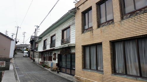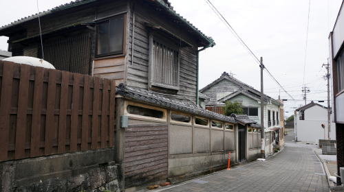 渥美半島の先端近く、三河湾側に福江という地区がある。半島随一の港で、その歴史は江戸の昔まで遡ることが出来る。 福江は大垣藩の支藩・大垣新田藩(畠村藩)の陣屋が置かれたところで、その跡地は公園となっている。この小高いところから西側の港にかけて町場が形成され、陣屋と港を結ぶ坂道には城坂という呼び名も残っている。坂を下るにつれ料亭を思わせる大柄な建物が幾つか見られ、賑わいの町であったことが伺える。 畠村藩は1万石ほどの小藩ではあったが、港には150石船が出入りし、主に三河湾内の往来ながら物資輸送の拠点として発展を見た。湾の南端の海域に面し、湾岸のどちらにも水運が便利という地形的条件も寄与していたのだろう。明治に入ると海運を行う法人も組織され、熱田・亀崎・半田・蒲郡・豊橋などの各地とを結び、また伊勢方面へも航路が伸びた。昭和に入ると陸上交通が整備され徐々に衰退したが、戦後しばらくまでは港町として重要な役割を果たしていた。 町の中心は陣屋のあった台地下の下地地区で、昭和初期頃は呉服店をはじめとした各種商店のほか、料理店も多く、旅館業を兼ねる料亭などもあり大層賑わったという。今その地区を歩いて一番印象的に映るのが往時の名残を留める料亭群で、一部は登録有形文化財となり現役で営業されている。そのひとつ角上楼は昭和元年創業そのままの堂々とした構えを有し、町のシンボルのようである。周辺にも幾つか料亭旅館があり、城坂の入口付近も料亭建物と洋館が見られる風情ある佇まいである。 渥美半島中央部から先端付近にかけては農村集落主体である中、特筆すべき発展を見た町と言えるだろう。 |