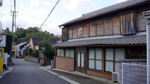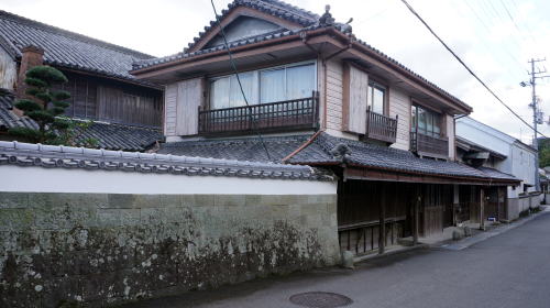 板野町は県の北東部、北は讃岐山脈を挟んで香川県に接し、町域南部は旧吉野川沿いの低地が展開している。高松自動車道および高徳本線が町を通り交通の便はよい。 南部一帯は藍作地帯で良質の藍玉を産出し、藍師屋敷と呼ばれる豪商宅が現在も散在している。一方讃岐山脈側は、街道沿いの大坂村に藩の関所が置かれ、通行人の改めが行われていた。讃岐側に抜けるのに短絡路的な位置で山の標高も比較的低いので、ここに峠越えが開かれたのは必然と思わせる。 一方で峠口を占める吹田地区は、やや遅れて新田開発が行われた後、藩主蜂須賀至鎮により諸役免除の地としたことで町場が発達した。周辺農村の在郷商業町的な性格を示し、商売、物流の拠点性が高まった。17世紀前半の元和期の文書には「吹田町中」と記されている。 探訪した吹田地区では、板野駅の北側に旧街道が残っており、大坂越から下る大坂谷川を渡る。左岸側は商店街的な街区となっており、古びた看板を掲げた店舗も散見される中で北側に街路を分かつ三差路がある。恐らくこれが大坂越えの道につながっているのだろう。 右岸側に転じると、街路の両側に町家風の建物が見られる中に、立派な造り酒屋がありシンボル的な存在に見えた。 町並が途切れる付近にある岡上神社には、樹齢700年といわれる巨大な楠が偉容を誇っていた。 |