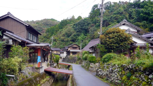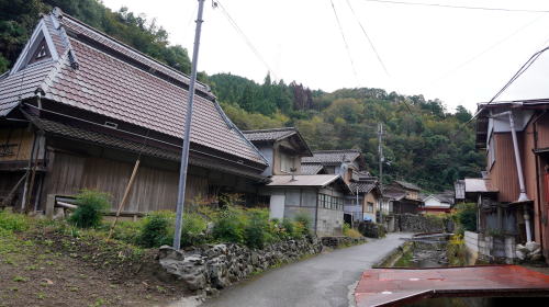 | 細い谷間に沿い素朴な家並の見られる黒谷地区 | |