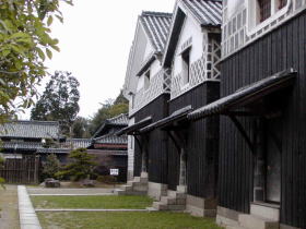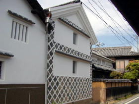 | 味野は西に鷲羽山を仰ぎ、東に由加山などのある山塊を控えた、低平な位置にある。江戸後期より周辺には塩田が開け、現在児島駅のある周辺は比較的最近まで廃塩田の広大な空地が広がっていた。 上の画像は味野の一角にある野崎家の旧宅である。日本一の塩田王と呼ばれた豪商の家で、長屋門をくぐると3000坪という広大な敷地に、貴賓を迎えた表書院、濡れ縁の一角にの水琴窟、天保4年の建築で奥行23間(43メートル)もある中座敷、枯山水の庭園、6つの蔵など、驚くばかりの大豪邸である。全国各地を見てもこれほどの規模を誇る個人の邸宅は余り無く、瀬戸内文化が凝集された典型的な旧家として価値の高いものである。周辺にも数件の別邸を所有し、現存している。 付近の海岸は野崎浜と呼ばれ、児島駅の反対側、港の近くに塩買船の誘導を主目的とした野崎浜灯台という木造の灯台が保存されており、児島のシンボルとなっている。 (03.03.16) |