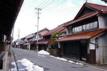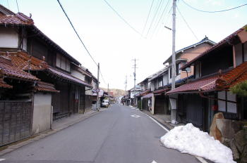 ここで紹介する町の北端近い蔵迫、南部の本地と、町並の色彩は赤茶色である。とりわけ本地地区は宿場町であったところで、南に向い緩やかな登りとなっている街道の両端には、静かな家並が取り残されたようにたたずんでいる。旧い棟割をそのまま残す屋敷もある。