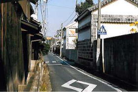 | この道は金毘羅への参道でした。 | 町家の連なる天城教会の裏通り |
