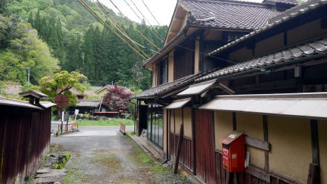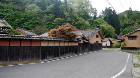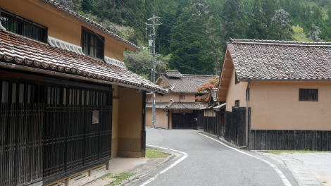 吹屋の中心街からは南東方向に坂道を下ると、谷間に下谷地区の家並が見えてくる。 外観は赤褐色の屋根に紅殻を混ぜた土壁を表に出し、細やかな格子が見られるなど中心部と共通しているが、土地の余裕があるからかひときわ大柄で格式を感じるもので、土蔵を複数従えた屋敷型を呈するものも見られる。中心街と比較するとわずかな家々であるが、改めて歩いてみるとその立派さに目を見張る。まさに珠玉の集落風景というべきところである。 旧家の多くは田村家を名乗り、それぞれ弁柄商を営み松店・梅店・竹店と呼ばれていたそうだ。案内板によると、殊に松店と云われたものは安政三年頃築の母屋が残り、田村家は明治半ばにここに移り商いを始め、昭和49年まで続けたという。 また竹店は初期の吹屋郵便局長を務め、梅店は明治後期には煙草商も行っていたとの解説があった。 一角には旧吹屋往来の案内標識もあり、産物の輸送は川港成羽からは水運に依っていたというがその先に眼を遣ると大変な急坂で、吹屋の中心街に至るだけでも相当な足労を要しそうであった。 吹屋への観光客は車で通過するばかりであるが、下車して少し歩いてみる価値はある。 |