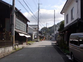 | 街道に沿って発展した町らしく町並は直線的に連なっています。しかし歯抜けのようになっている部分も多く見られ全体にさびれた雰囲気です。 | |