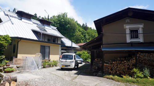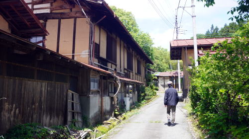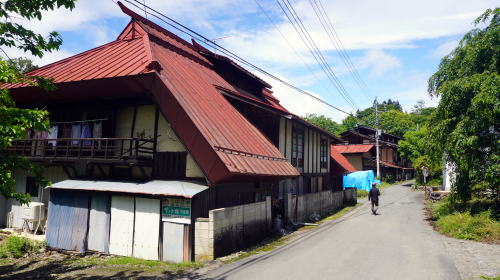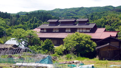 | 上州では江戸の昔より養蚕・製糸業が非常に盛んに行われており、山間部では蚕を飼育しその繭(蛹)を得る養蚕農家が多く立地し、前橋や高崎周辺ではそれを受けて製糸業が発達、桐生や伊勢崎などでは絹織物業が興り、それらは利根川水系の舟運を経て江戸へ運ばれていた。特に横浜の開港後は繊維の需要が激増したこともあり養蚕大国となり、有名な官営富岡製糸場など象徴する施設も今に残っている。大規模な工場施設だけではなく、山間部を中心に独特のつくりをした養蚕農家が多く残り、独特の集落景観を示しているものも多い。ここで紹介するのは代表的な養蚕集落の一つ・新治村役場裏に位置する箕輪集落である。 村役場や国道近くに存在しているにも関わらず濃厚で強烈ともいえる集落風景を示していた。田園地帯から小高い山を回りこむ農道を抜けると、突然のように視界が開け村落全体が見渡せるその演出も心憎い。それだけに印象度は強いものがある。 最も特徴的なのが屋根に飛び出た気抜きの小屋根だが、元茅葺と思われるトタンに被われた兜屋根を持つ家屋、土壁むき出しの土蔵などが特筆され、周囲を山に囲まれ遮蔽性が高いこともあるからか、一種別世界的ともいえるような集落の広がりを感じさせる。 この地域の養蚕民家の構造的特徴に三階建や軒せがいなどがある。いずれも養蚕室を極力広く取るための工夫であるが、上層階がせり出したようなその外観は迫力を感じさせる。妻部が真壁という梁を壁面に表した造りとなっていることもその特徴を際立たせており、それらが町並といえるほど密度濃く寄り固まって連なっていることで、尚一層の特異性が感じられる。 もちろん商家の連なる都市型の古い町並とは趣は大きく異なり、通りに面するのは家々の玄関ではなく土蔵や伸びやかな庭であり、奥まった位置に主屋が配されている光景は、養蚕業でかなり潤ったであろうことが容易に想像できる。この箕輪集落では昭和60年頃まで養蚕が行われていたらしい。多くの建物は明治中期建築のものだそうだが、近年まで現役であっただけに活き活きとした息吹がこの集落からは感じられるようだ。 今回、15年振りに再訪してみて集落の建物的体裁はほぼ変っていない様に見えた。現在も各戸で農家としての生活が営まれており、農道の先の奥まったような位置にあることから注目されることなく、密かに息づいているような風情が漂っていた。 |