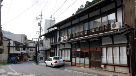 下呂町は飛騨地方の南東部、益田川沿いの小盆地に市街地が開ける。 下呂駅が特急も必ず停車する高山本線の主要駅であるのは、町の大きさもあるが観光客の利用が多いからであり、東海三県では屈指の温泉地として知られるところである。 千年以上前から現在の市街地東方の山地にある湯が峰で湯が湧いていたが、後にその湯が止まって河原で湧出するようになったという。一説によると一羽の白鷺が毎日河原に降り立つが見え、村人が確認するとそこに湯が湧き出していたとのことである。 室町期には既に多くの客が温泉を求めて訪ねるようになっており、江戸に入ると年間3万人もの湯治客・入湯客があったと伝えられている。徳川家に仕えた儒学者の林羅山が草津温泉、有馬温泉とならんで下呂温泉をわが国を代表する温泉と讃えたこともあり、この頃には既に全国に知られていたようだ。三大文政8(1825)年の益田川の洪水により温泉街や源泉も潰れてしまい、一度は寂れたが明治9年に新しい泉脈が発見されてからは以前にも増して賑わい、現在の温泉地に引継がれている。 温泉町としての雰囲気は市街地北部の湯之島地区に濃く感じられる。やや起伏のある地形に旅館や飲食店等が建ちならぶ。近代的なビル旅館も多く、土産物屋など観光地の風情だが、北に向うにつれ徐々にその色合いも淡くなっていく。二階建程度の木造の中小規模旅館が連なり、それらが古い町並的景観を作り出している。これがこの町本来の旅館街の姿だったのだろう。 |