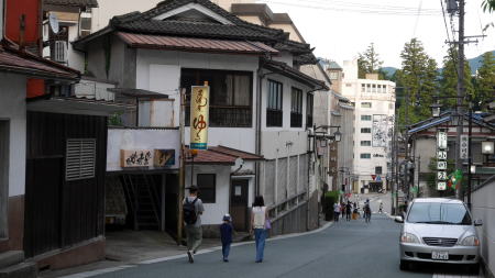 | 湯之島地区の町並 北に向うにつれ温泉観光地の色は淡くなる | |