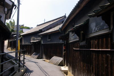 大和盆地桜井から東へ山間に分け入る伊勢街道(本街道)は、この萩原で青(阿保)越道(他の別名に伊勢北街道または伊勢表街道)を分岐させていた。その追分に旧旅籠の「あぶらや」が状態良く残る。18世紀末頃の建築と考えられているが後世に余り改造が加えられなかったこともあり、宿場として全盛だった頃の姿をそのまま残す貴重な遺構である。美しい格子、2階に煙出しの小屋根を従え、2階正面と側面の袖壁部分には屋号を鏝絵調に表現していた。「本居宣長公宿泊」の木札も生々しい。 古い町並はこのあぶらやを核に、T字を横にした形で展開し、南北には伊勢本街道の家並が残る。北に向って緩い登りとなっている街道沿いには虫籠窓をまとった旧家や、主屋前面に枝振りのよい松を這わせた妻入りの家屋などが見られ、路地風景も趣深く残っていた。 あぶらやの正面に分岐する道は青越道で、国道を跨ぎ東に伸びている。緩いカーブの続く道は見通しが利かず、防衛上も有効であったと思われるが、それよりも家並の展開にはいい演出だ。平入りの旧家がある程度連続して残り、虫籠窓や犬走りなどの意匠も洗練された感じで風格がある。一方で中2階と本2階が混在し、軒の高さも統一的でないのは、長きに渡り街道集落として栄えていたことを証明しているようであった。伊勢参りというかつての一大行事は維新後も続き、大正初期に参宮急行電鉄が全線開通するまでは、少なくとも宿場町としての機能があったのだろう。 近鉄で鶴橋や上本町まで30分余りと近く、通勤者も多くベッドタウン的な様相を示しているがその一方でこの旧萩原宿が当時の町並をとどめていることは貴重である。訪ねたところ特に目立った保存活動などはなされていないようであり、行く末が少し気掛りでもある。地味に目立たず維持されていくことを望みたい。 |