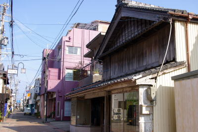 | 浜島町は志摩半島の南部、南に開けた英虞湾の湾口を占めている。 市街地は湾に突き出した小半島付近に展開し、比較的まとまった家並が展開している。海岸沿いの車道が開通する前の幹線道路と思われる一本山側の道に沿い、やや古びた町並が連なっていた。商店街及び旅館街といったのが本来の姿だったらしく、商家風の建物が見られ、一部の旅館はまだ現役で営業されている。 中世には浜島城が構えられていた当所は、当時から志摩南部の拠点として開けており、江戸時代には藩の浦役を納め、その品目は銀の他鯛・鰹・鰹節等の魚介類及びその加工品であった。また伊勢海老の漁獲も多く、現在でも主要な漁獲品となっている。 江戸期には船乗りを相手に多くの遊女も存在していた。この地域の港町には遊興地区が多く発達しており、現在もその形を変えて営業を続ける島も存在する。浜島では廃れたが、家々の外観にはどこかしらその残影を見るようで、単なる港町の風情とはやや異なるものを感じた。幕末頃には他村からも多くの売春婦がここに押しかけてきていたという。 伝統的な建物の割合は高いものではないが、家々の密集度はなかなかのものであり、旧道のその閉鎖空間的な眺めは郷愁感を覚えるに十分なものがある。暮らす人々の姿も多く見え、寂れていない感じも好感が持てた。 |