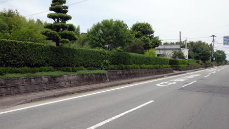 菊陽町原水は阿蘇地方から流れ出る白川の河岸段丘上に展開している。熊本市の郊外にも当たっており、豊肥本線の駅付近や国道沿いは新市街地として 賑わいを見せる。 一方、川を隔てた右岸側には非常に特徴的な集落が見られる。ほぼ直線の4kmにわたる街路に沿い、小ざっぱりした生垣が連なり、鉄砲小路と名付けられている。 この街路は、当時の藩主であった細川忠利が計画した郷士集落である。この地は熊本城からみると鬼門にあたり、外部からの敵を防御し城や城下町を守る目的で造られた。いわゆる屯田兵的性格を持った集落である。 当時付近は未開の土地であり、農地として開墾する目的も与えられていた。そのため住居は街路の北側のみに計画され、南側は作業場としたという。現在でも生垣や宅地が見られるのはほぼ北側に限られている。間口は15間に統一されていたこともあり、整然とした雰囲気が今でも漂う。 現在の鉄砲小路は生活路であり、時折地元の車両が通る程度で静かな街路である。その成立ちを知ると非常に興味深く訪ねられる集落だ。またこの生垣は住民によって植えられ、また管理されているとのことで、地元の方の景観・歴史認識の強さが伺える。 |