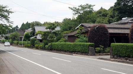 | 生垣が長々と連なる原水(鉄砲小路)の町並 | |