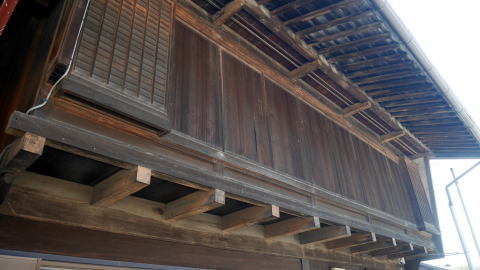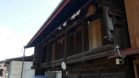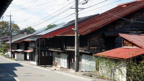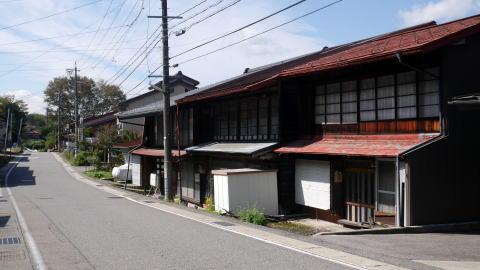 中山道木曽路はほぼ全区間木曽川の狭い谷間となっているが、この原野・宮ノ越付近は比較的開けたところで、谷間というよりはむしろ小盆地という印象である。 原野地区の旧街道沿いの家並は木曽川の河岸段丘上に伸びており、国道19号より一段低い位置にある。街道から更に木曽川に近いあたりに中央本線原野駅があり、この付近から北側に街道集落が展開する。トタン屋根に覆われた家々が短区間ながら連続性を保っており、街道集落らしい風景が残されていた。いずれもせがい造りで軒が深く、この地域独特の構えを有していた。 江戸期には周囲で薪炭の採取や木曽馬の牧畜が行われる一方、街道沿いには茶屋が設けられ旅人の小休止場となり、また店舗も集積したようだ。現在の家々を見てももと商店らしく一階部分が開放的なものが多い。 |