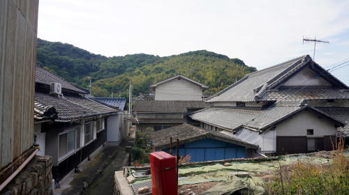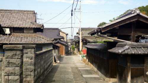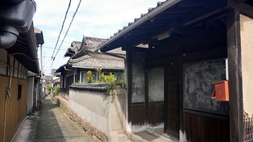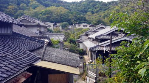 有人島しての歴史は元和年間、付近の海域で船が遭難した場合に備え、藩主水野勝成の命で家臣をはじめ数人の者が入島・開拓したことが始まりという。この時移住した村上氏はさらに因島から9名の者を移住させ、開拓に努めた。元禄11(1698)年には村上氏は島に知行地(所領)を与えられており、今も集落の中心には村上神社が鎮座している。 以来漁村として発達を続け、鯛や鰯を中心に近海漁業が行われた。 島は鞆港より定期船で結ばれ、比較的便数も多い。港の漁船の多さが示すように主産業は漁業であるが、内陸に向うと本瓦葺で入母屋屋根を持つ立派な家屋が散見され、これらの佇まいを見ていると農村集落的な雰囲気も漂う。そんな建て込みの間には様々な形の路地風景が展開しており、そのあたりに集落町並的な風情を感じる。 港付近には餌付けされているらしく猫の姿が多く目につき、それを目当てに訪れる客もあるようだった。 |