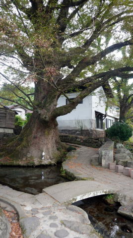 県の北東端、小国町は東側を久住連山、南は南小国町を経て阿蘇の外輪山に向う高原状の地形を示しており、熊本県ながら筑後川水系の上流域を占めている。一帯は木材特に小国杉と称される良質な杉の山地で、林業を中心とした産業、また杖立温泉を筆頭に温泉資源にも恵まれている。 阿蘇郡の北端にあって中世には小国郷と呼ばれ阿蘇神社領に属していた。江戸期は熊本藩領ではじめ加藤氏、その後細川氏の領地となり、北里手永(手永は細川氏の統治した行政単位)に属し小国会所が置かれた。前述のように杉を中心とした林業は、藩から奨励されたことで当地に根付いた。細川氏は各戸に25本ずつ苗木を配布し、植林するよう命じたという。林業の先進地であった大和吉野地方まで赴き技術を学ぶものもあり、多くの林業家と輩出した。 また地理的に周囲からの街路が集結する位置にあり、物資も集まりやすいこともあり商業が発展、中心にあたる宮原(みやのはる)には町場が発達した。 この町がいかに賑わっていたかを示すたたずまいが、市街地の主に東部に見られる。妻入りで間口の広く二階の立上がりも高い商家風の構えが見られ、一部には連続的に建ち並ぶ姿もあった。土蔵造りも目立ち、裕福な商家が居を構えたことが伺える。中でも象徴的な建物が一角にある旧小国銀行だろう。昭和10年築で洋風の構えを見せ、R面取りされた位置に玄関を持つ。林業・農業など豊富な産業により預金量も多く、小国銀行は優良銀行であったという。 付近は水の豊富な所で、街路から少し外れた所に「けやき水源」という湧水池があり豊富に湧き出している。阿蘇溶岩の隙間に水脈があってこの一帯で地上に出て来るということで、他にも水場があちこちに見られる。この水の豊かさも町の発展に大きく寄与したものである。街路から今度は山手に眼を転じると、富くじの道と書かれた小さな案内板がある。これは藩主一団の通行時に人馬の賃料不足に悩んだ会所が、藩の許可を得て地内の神社で富くじをはじめ、一番くじを当てた湊屋純左衛門はそれを独り占めにはできないと、脇道の坂とけやき水源までの道を石畳に改装したという。 |