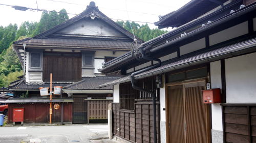 | 大柄な商家建築の見られる小国(宮原)の町並 | |