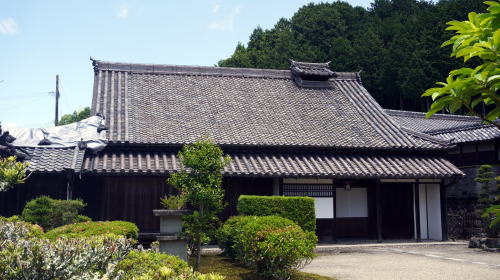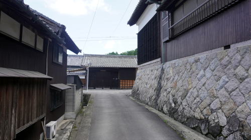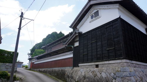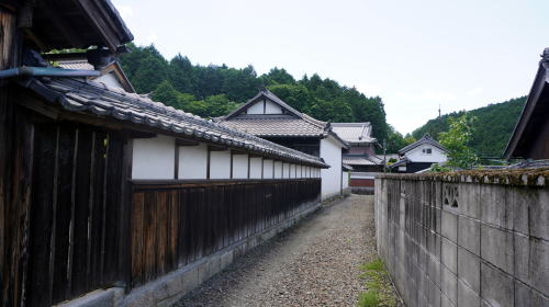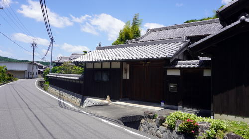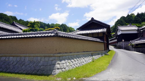 旧近鉄伊賀線の伊賀鉄道・丸山駅付近は長閑な田園といった印象で、木津川支流の比自岐川に沿って東に進むと1kmほどで枅川という集落に達する。河川名と同様ひじきがわと読むが、この字はひじきという読みは持たず、当て字だろうか。「枅」は柱の上で棟木を受ける角材という意味である。 江戸時代の所領は初期には上野藩領であったが、後に津藩領となっている。神戸四郷と称された村々のひとつであった。 古い町並というより小さな農村集落といったところだが、特筆されるのが延享元年(1744)築の町井家住宅である。入母屋造りの主屋、複数の土蔵を従え、土塀に囲われた広大な敷地を持っており、当家の建物群自らが古い町並を形成している。江戸初期には大庄屋をつとめていたという家で、当地の上級農家を知ることができる貴重な遺構である。 この町井家を筆頭に、集落には豪農を思わせる佇まいが多い。丸山駅に向う道沿いにも断続的に立派な邸宅が見られ、長屋門風の門を従えたものもあった。 |