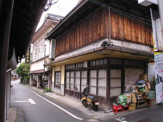 | 日奈久温泉街で抜群の存在感を誇る木造三階建旅館 | 旅館街周辺の町並も歴史の積重ねを感じさせます。 |