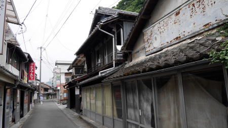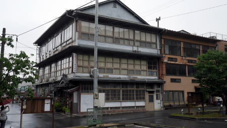 町の背後には山地が迫り平地はほとんどない。したがってこの温泉場は狭い土地にひしめくように旅館、一般の民家が建ちならび、密度の高い町並となっている。木造三階建の威容を誇る旅館「金波楼」を中心として、その外縁に中規模旅館の並ぶ温泉街が連なる。また山寄りに旧薩摩街道が縦断しており、商家の家並が見られる。日奈久の古い町並はこの二段構成となっている。 応永16(1409)年に海中に湧出する温泉を発見したのが始まりといわれ、後に薩摩街道筋にあたり人の往来が多かったことからも温泉場としての発展を見、旅人が多く利用した。 熊本藩はここを藩営とし、海岸部にかけて新たな温泉も発見された。文化・文政年間(19世紀前半)の全国温泉番付では「前頭9枚目」に登場している。薩摩藩主の参勤交代時にも利用されていたといわれる。維新後も温泉町の賑わいは衰えず、明治33年当時の温泉宿の軒数約15軒。鉄道が開通するまでは近在の客を中心とした湯治場的な要素があったが、後に観光地としての賑わいを見せた。 町並は近年になっての保養観光地として開発された中に、古くから湯治場として栄えていた雰囲気も残し、いい調和が保たれている。また旧薩摩街道沿いでは海鼠壁を施された蔵造りの旧家が町並景観をつくり出し、周囲には平入りの町家風建築が見られた。 今回、13年ぶりの再訪となったが、温泉街の外縁部では空地となっている箇所が散見された。いずれも旅館だった場所だろうと思われる。また、前年発生した熊本地震の余波か客足は減っているようであり、やや寂しさを感じる探訪となった。歴史と格式ある温泉地であるだけに、活気を取り戻してほしいものである。 |