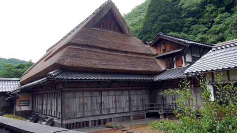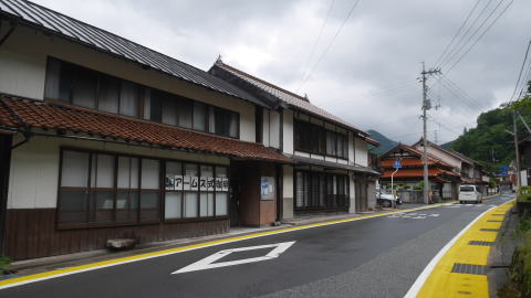 石見町日貫地区は県の西部、西に峠を控えた小盆地にある。山峡の趣だが現在も幾つかの道が交差し、古くからの地域の中心的集落であっただろうことが推察される。 江戸時代は津和野藩領で、ここを中心とした領土は日貫組と呼ばれていた。当初は郡奉行所配下の代官所が置かれたが、後に庄屋が地区を取りまとめた。藩の米蔵もあり周辺諸村の年貢米が収納された。った。さらに楮や茶、漆、桑、薪などが産出され藩に納められた。 また一帯で盛んだった製鉄業も行われ、たたらと呼ばれる製鉄所が10箇所余りあったといわれている。 嘉永14(1637)年の記録では1600人余りの人口を有していたといい、既に集落が形成され商工業も行われていたという。 日貫川左岸に町並が展開し、小さいながらも密度の高い家並が展開している。赤瓦屋根と平入りの構造に統一され、商家町であったことを示しているようだ。立派な門を持つ邸宅もあった。 橋向うの右岸側を見ると、ひときわ目立つ茅葺の主屋が目に入る。代々庄屋を務めた山崎家住宅で現在は町が所有している。地主でもありまた金融業を営み、明治18年山陰初の銀行である浜田銀行の取締役や頭取ともなっている。建物としても屋根の茅葺が二段になっているなどなかなか特徴的な造りだ。数年前に葺き替えられるなど保存活動も適切に行われているようで、集落の歴史を語るものとして大切に守っていただきたいものだ。 |