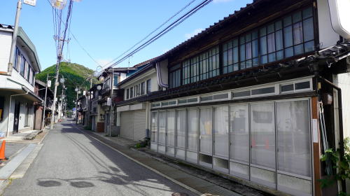 | 比和町は県北東部、町域の9割を山林が占める典型的な山間の町で、江の川の支流比和川に沿って極狭い平地が所々に開け、集落が散在している。主邑の比和は小さいながらも町としての体裁が整い、商店や地区の行政機関もある。 比和川の左岸に細長くのびる市街地は、国道432号線が川の反対側に建設されたために旧態を留める。平入りの木造建築が軒を接して連続し、一部は中二階形式を守り、また袖壁を有したものも見られ古い町並としての姿を残していた。ただそのまま商店街となっているため、一階部分はほとんど改装され、格子などの伝統的な意匠は見られなかった。 商店街とはいっても店舗として営業しているものは僅かしかなく、開放的なアルミサッシがはめられていたりすることで商店だったであろうことを推測できる程度である。街灯が設置されていて、その支柱には数少ない店舗名が宣伝されているが、車で20分余りの庄原市の店の宣伝も目立った。最近では極日常的な品物以外は、車を使って庄原市街で調達するに違いない。 しかし、この比和は戦後しばらくまでは活気ある町だった。はるか以前には、この地方一帯の一大産業であった製鉄業、砂鉄採取業の核心地でもあった。『芸藩通志』にも「業は農を専として別産なし」としながらも、「地により鉄鉱炭焼をなすもの少なからず」と記録され、基幹産業であったことが触れられている。幕末にかけて藩の事業として取組まれ、この比和は生産物の貨物輸送の拠点となり、また陰陽連絡も盛んになって宿場町的要素をも帯びていたという。 明治以降も官営広島鉱山として一帯の鉄山の経営が行われていたが、八幡製鉄所の創業などもあり和鉄の地位が低下し、後期には衰退していった。以後は近隣の物資の集結所、山陰との連絡路の一端の街道町として位置づけられていた。確かに備後地域としては珍しく、山陰を思わせる赤褐色の瓦が半数近くを占めるのも、それを証明しているようだった。 比和町を含む中国山地一帯は全国的にも過疎化が最も顕著な地域の一つで、第二次大戦後のピーク時からは人口は半分以下に急減している。町を歩いていても人の往来は少なく、商店街と呼べる賑わいはすでに失われていた。今後も衰退の方向に向かい続けることは間違いないだろう。せめて、その速度は緩いものであってほしいものだ。 |