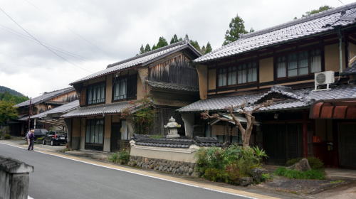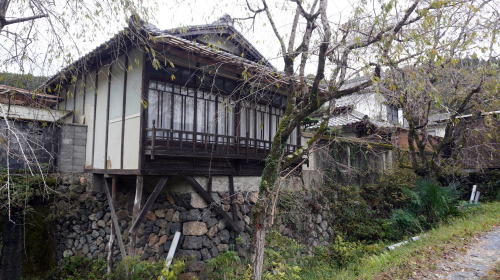 日吉町殿田地区は地区の南側を大堰川が南流する。この川は下流部で桂川と名を変え嵐山渡月橋を潜り、さらに下流で宇治川と合流し大阪湾に注ぐ淀川水系の河川である。この殿田付近では川幅が増し、支流を集めて川幅も広がることから、古くは船筏の中継地として発達した所である。 大堰川の筏流しは奈良時代から行われていたともいわれ、丹波各地の木材はもっぱらこの水運により筏が組まれ、次々と川を下っていった。半数は淀川から大坂に向ったが、渡月橋脇の貯木場で引き上げられるものも多く、それらの木材は京の都の発展にも欠かせないものであった。 特に慶長期に大堰川が大規模に改修されて以後、殿田で大きな筏に組み直して川を下ることが通例になり、木材問屋をはじめ商家群が町場を形成し、大層賑わいを見せたという。寛政元(1789)年の記録では戸数92・400人余りの人口を有していた。 町並は河川合流点の北側に展開しており、町筋と呼ばれる支流側の集落と、東町という大堰川側とに分れている。後者では建物や町並としての特徴は余り見られず、比較的新しい家々が多いが、町筋地区では支流の流路にあわせて緩やかに曲線を描く街路に沿って伝統的な家々が見られる。土塀を巡らした立派な構えを持つものもある。一部には旧家を商店や集会所に再利用している姿も見られた。 近くに山陰本線の日吉駅があるが、駅前から続く道からは外れ入組んだような位置にあることから、地元の車以外はほぼ通過することもなく静かというよりやや寂しさも感じる雰囲気が支配していた。 |