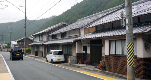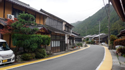 | 曲線の街路に沿い展開する殿田の町並 | |