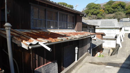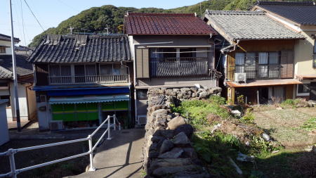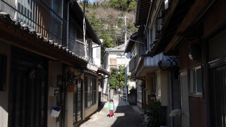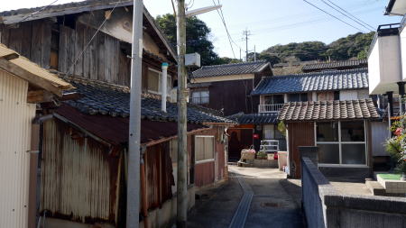 阿翁地区とは反対の東岸部には一回り小さな漁村集落・日比地区がある。ここは架橋される前に本土側との渡船が出ていたところである。現在はひっそりとしており、静かな路地風景が展開していた。 |