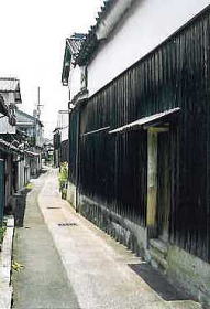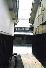| 土蔵に挟まった路地より街道を望む。このような絵になる情景もまだ残っています。 | 黒板塀の路地 |