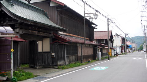 一迫町川口地区は県の北西部、北側の秋田県境より流れ下る一迫川が開析した平地に沿い展開している。南側の鳴子温泉などのある江合川沿いの地区とは山地により隔てられている。 川口地区は羽州仙北道(小安街道とも)の宿駅が置かれたところであった。この街道は奥州街道の築館宿から羽州十文字に至るもので、主に物資の輸送に使われ仙台・秋田間の主要な交易路となっていた。南東5kmほどの真坂宿から当宿を経て、寒湯番所を経て出羽に至っていた。 「川口村安永風土記」によれば、宿場町は二町二一間の長さを持ち、上町・中町・下町さらに三町の新町、二町の東町から成っており、真坂宿までは本荷三六文とある。またこの土地は遠藤氏の諸拝領となっており、天和元(1681)年の「遠藤山城在所絵図」では宿場とともに家中屋敷が描かれ、侍屋敷60軒、足軽屋敷46軒、小人屋敷28軒が許されていた。「安永風土記」によると家数38に男94・女32とある。 町の中央で街路が二度直角に折れており、そのことからも宿場町・武家町としての防犯上の対策だったであろうことがわかる。まず目につくのが銘酒・一ノ蔵の第二蔵である「金龍蔵」の佇まいである。厳かな門構えの奥には多数の土蔵が連なっており、赤いトタン葺きの屋根もあり迫力すら感じる風景だ。穀倉地帯であるこの付近では伊達家の御膳米も産出されており、「金田」と称されていたことが蔵名の由来と云われる。 街道沿いを歩くと、物資の往来のほか豊かな穀物に恵まれ裕福な家が多かったのか、商家風の建物も多く目につく。特に金龍蔵から北側に街路の屈曲を過ぎると妻入りの非常に重厚な商家がひときわ異彩を放っていた。門構えは寺院を思わせるほど立派なもので、その奥には端正に整えられた中庭が望まれた。 武家町らしい姿は見た所感じられなかったが、古い町並と呼ぶには十分な姿である。築館方面から向うと田園が続き大きな町もない中で、突然のように現れることも印象度を高めているようだ。地元の方々が町並や建物を意識されている様子はうかがえなかったが、その価値もあるように思われ、酒蔵や商家の建物を中心に保存・活用へと動かれるのも一興であろう。 |