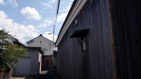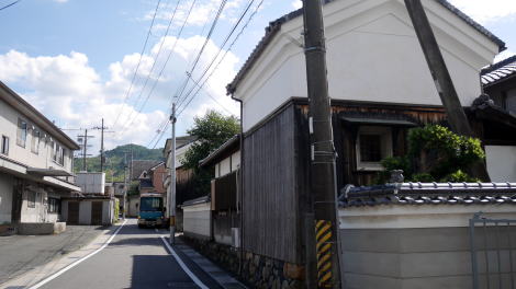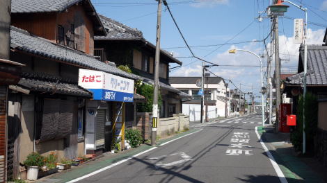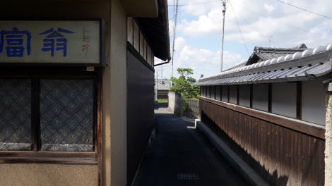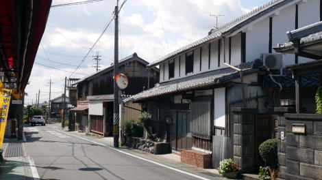 | 井手町は府の南端付近、木津川右岸の平野部に市街地が開けるが、町域の大半は山地となっている。 町の中心はかつて玉水と呼ばれ、奈良街道が縦貫しており宿駅が設けられていたという。玉水の発展は街道と水運が接していたことによるところが大きく、木津川の川港には淀船と呼ばれる商船が木津川・淀川沿いさらに大坂とを上下し、舟運の拠点となっていた。水陸の結節点は町場が発達する大きな要因となる。現在は堤防に遮られて町の中心と川の接点を見出すことはできないが、古くから賑わっていた町であっただろうことは想像に難くないところだ。産業としては養鶏・製茶・梅の栽培などがあった。 明治29年に奈良鉄道玉水駅が設置されると、綴喜郡の中心的な町に位置付けるなど発展が続いた。大正15年には町制が施行されて井手町となり、昭和33年には北隣の多賀村と合併した。 旧奈良街道筋はJR奈良線の東側に南北に残り、玉水駅から南側、玉川という細い流れを渡る辺りから街道集落らしい佇まいが見えてくる。但しかつての宿場街は現代の商店街として利用されたためか、古い町並らしい色は淡かった。その中で入り母屋の屋根を持つ家々が目立ち、家並に重厚感を感じることができるが、それらの多くはは昭和になってから建てられたものと思われる。昭和28年には大規模な水害により玉水の中心付近は壊滅的被害を受けたということで、その時に更新された建物も多いのだろう。 一方街道からはずれると土蔵の散見される路地や塀の連なる風景などもあり、街道沿いとは異なる町並が展開していた。街道の周囲は農村集落が展開していたのだろう。 |
