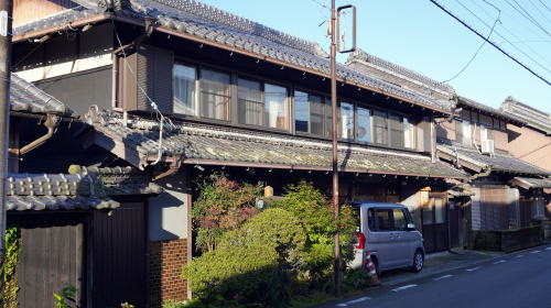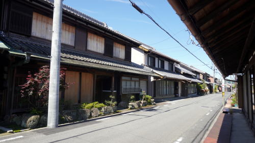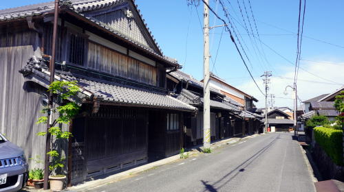 城下町上野の市街地から東へ7kmほどの平田地区。大型店舗も見られる国道163号沿いから一本北側、旧伊勢街道と呼ばれる旧道には正反対の町並が密かに残っている。 この伊勢街道は伊賀上野城と津城を結ぶ道として重要な道であり、平田には承応2(1653)年に宿駅が指定された。東隣りの平松宿との間が長いため馬継ぎの宿としてはじまったものだが、それ以前にも集落が既にあって、そこに宿駅機能が付加されたものと考えられている。しかし、もともと街道町であったのだろう、現在も一本の街路の両側に見事に連なる街村の形となっている。 |