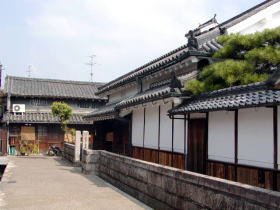| 区域内の家並はほとんどこのような旧家で占められています。 | 左は河合家住宅(重文)。代々続く造り酒屋です。 |