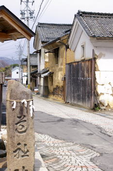 長野盆地の南部にあるこの稲荷山へは篠ノ井線の駅が設けられているが、町の中心はその南方1.5kmと離れた位置にある。 町は南北に旧北国西往還が走り、その往還沿いに町が開ける街村の形態だ。北国西往還は中山道の洗馬宿(塩尻市)から松本を経て善光寺門前に達する街道で、別名善光寺街道と呼ばれる。 この稲荷山は北国西往還の宿駅が設けられ、それを発端に商業が集積し一大商業街として大きな発展を見た。街道を通して麻績など西部や南部の山間地域の産物がここに集まり、また中山道を通して上方からの産物も移入されたこともあり問屋も存在した。天保期(19世紀前半)の記録では綿商人が33軒も存在していたのをはじめ、旅籠屋、呉服屋、豆腐屋等数十種類にも及ぶ商業活動が行われ、善光寺平南部の中心都市として位置づけられていた。 また宿駅としても、慶長期頃までには宿場町としての体裁が整えられ、北から荒町、中町、横町、八日町と町割され、横町の位置には枡形が設けられた。今でもこの部分では直角に街路が二度折れ曲り、宿場町らしい風景を残している。また街道の東に並行する東町は歓楽街であった。問屋を兼ねた本陣が1軒、馬も常備され、難所猿ヶ馬場峠を控えた西隣の麻績宿などへの輸送に従事していた。 旧北国街道沿いには平入の町家、土蔵造りの旧家などが多く残り、連続した見応えのある町並を残していた。一部には袖壁が設置され、これは中山道を通して上方や濃尾地方の影響を受けたものなのか。一方で関東地方で良く見られる黒漆喰の重厚な土蔵建築も残り、地理的にも文化的にも東西の文化の混交した地域であることを感じさせた。特に枡形付近からその北側、旧荒町から中町にかけては豪商の家だったであろう間口の広い町家が多く残り古い町並というにふさわしい。中二階の建物は少なく二階の立上りの高いものが目立つことから、明治時代以降の建築が大半を占めているものと思われる。実際弘化4(1847)の善光寺大地震により大きな被害を受けている町並なので、古いものでも幕末のものなのだろう。明治期から大正期にかけてもここは呉服商の一大拠点となっていた。 その一角に「蔵し館」として公開される町家があった。この町並では唯一の公開された家屋である。展示されていた明治時代の稲荷山の写真を見ると、自転車に乗った人の往来や、街灯の設置など近代的な商業都市だったことを感じさせた。案内の方に聞くところによると、稲荷山ではこれといった町並の保存活動はないそうで、それでもこのような連続した重厚な古い町並が残っているということは、現代の幹線交通路から外れたこともあるが、過去の蓄積がいかに大きなものであったかを語っているようだ。 町家の連なる家並の西側には、小さな流れに沿って土蔵の連なる風景がある。これらは表通りの商家群の裏手にあたり、物置等に使われていた土蔵なのだろう。本などに稲荷山の風景というと良く紹介される通り、風情のある小路であった。 |