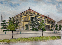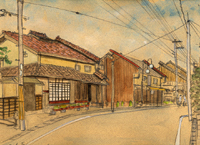 通常ならこれてたいていのグループの総会やオフ会はの場合はあとは解散後、帰路を一直線なのだろうが、いらかぐみではここで一旦別れてから各人ごとに、あるいは少人数でたまたま同じ方面への探訪があれば合流して帰路を楽しむことになる。Kさんは新井漁港へ行き、棚田などをみて廻るが結局、舟屋をスケッチした。孫右衛門さんは平田地区をもう少し見てから篠山をみてから広島までの帰路へつく。七ちょめさん、nomnomさん、Yasukoさんと私は宮津へむかう。そこでは七ちょめさんの案内で三上家、醤油店、教会、遊郭街をみた。 そこでYasukoさんは帰宅時間の関係でまだよりたい舞鶴などを残して帰路につく。七ちょめさんは用意いたピンホールカメラは今回はいちども写す場面がなかったのがちょっと物足りなかったように思えた。nomnomさんと私はその後舞鶴のあまり残ってない遊郭街に多少落胆しつつ最終地綾部に立ち寄ることにした。近代建築ファンのわたしがグンゼの本館ビルや記念館を見たかったのだ。企業城下町に興味がある二人でグンゼの社宅を発見。まだ現役の木造社宅だ。それからnomnomさんが用意した一枚の航空写真だけをたよりに中心の町並みや遊郭街を発見できたのが帰路の大きな収穫であった。 |