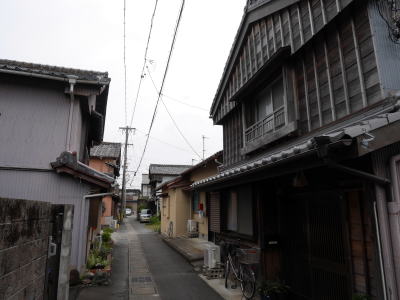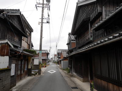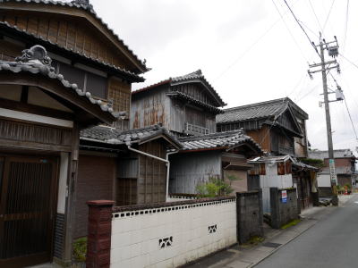神社(かみやしろ)地区は伊勢市内を流れる勢田川の河口部左岸側の集落で、すぐ下流で五十鈴川が合流し深い入江のような地形となっている。 江戸期には伊勢宮の外港として重要な役割を持つ港町だった。廻船業が発達し、港は諸国からの商船が頻繁に発着した。享保年間の記録では8隻の廻船を所有しており、海運業者も多かった。また造船技術にも定評があり、近隣各国より名声を得ていた。 港を基盤に海産物・塩・魚・醤油などを取扱う問屋も発生し、河崎地区とならんで商業町として発達した。 また、駿河から三河にかけての参宮客は海路を用いた方が距離が近く、この神社港は参宮港としての役割も持っていた。最盛期には船宿26軒をはじめ、船娼51を有するなど遊興地的な色彩も濃厚なものとなっていた。 船での参宮客は決して少ない数ではなかったようで、東海道の吉田(豊橋)以西の宿場が衰微するということで幕府からの吟味を受けた事もあったという。それに対し交通の利便性から自然と上陸客が増えているだけで特に東海道筋で宣伝はしていない旨を主張し、お咎め無きを得たとのことである。それほど勢田川の舟運は発達していたのである。 地図を見てもこの地区は路地が複雑に入組んだ様子がわかり、古い町であろうことがわかる。それら小路に沿って妻入り、板壁という伊勢様式の建物が見られる。連続した古い町並は少ないが質的には河崎等で見られるものと同様である。 現在は市街中心から外れ、商港・参宮港としての機能を終えて久しく、人通りも少ない静かな佇まいであった。 |