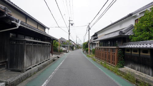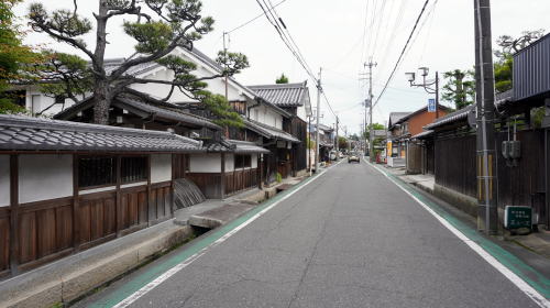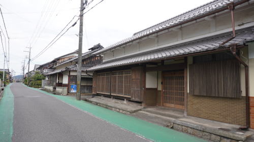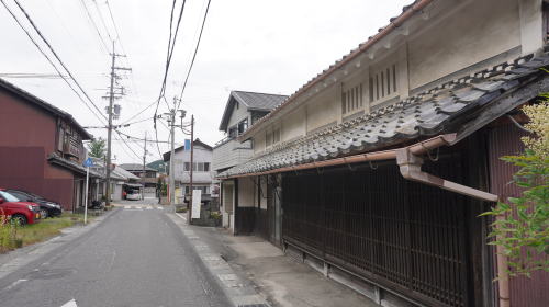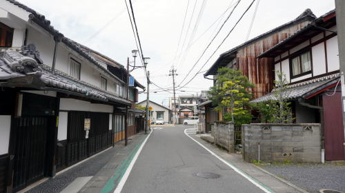 石部町は県の南東部、野洲川左岸に市街地が展開する。川に近い方から国道1号、草津線が町域を横断している。 その南側500mほどのところには最も古い交通幹線である旧東海道が現在もその街道筋を残している。慶長6(1601)年、東海道の伝馬の法が制定され、石部は宿駅に指定された。 石部宿には幕府および膳所藩専用の本陣が置かれ、全盛期には62の旅籠が存在し多くの旅人が休息した。江戸から見て51番目の宿場町は京都を出発した初日にここに宿をとるのに適した距離にあったことから「京立ち石部泊り」といわれ、利用者も多かった。また260軒の商家もあったというから、商業的にもかなりの発展を見たであろうことがわかる。 石部東の落合川より西が宿場町であったところで、そこから西にほぼ一直線に1.5kmほど連なり吉御子神社門前付近に達し、そこから北に折れ草津方面に向う。本陣の建物は現存せず際立った古い町並が連なっているわけではないが、家並の連続性が高く、漆喰に塗り込められた虫籠窓を持つ小ざっぱりした商家・土蔵からは宿場町を基盤にさまざまな商いが行われていたのだろうと想起させる。立派な門を持つ邸宅も見られた。 町並としては宿場区間の東側、柑子袋(こうじぶくろ)地区にも大きく街道集落が展開している。実際上はこの地区を含め3km以上にわたり家並の連なりが見られる。草津線の甲西駅から石部駅まで一駅歩けば両地区を通しで歩くことができる。街道集落を存分に味わうことのできる区間である。 |