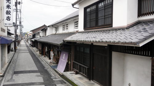 岩国市の現在の中心は岩国駅の西に隣接する地区で、商業・行政の中心施設もほとんどこのエリアであるが、明治時代までは錦帯橋に近い地区(西岩国駅周辺)であった。この町も城下町から工業都市へと顔を変えたが、この旧市街地は、古い顔である城下の町並を濃厚に伝える地域も残っている。 吉川氏の城下町であったこの一帯は、錦川を挟み対照的な町の姿を示している。北側の城山麓の横山地区は政治の中心であり、藩の主要な施設や重臣の屋敷が立ち並んでいた。今は錦帯橋を中心とした観光地の一角で、吉香公園として整備されており訪問客が絶えない。今でも一部に長屋門や旧宅が残っている。 一方で橋向うの左岸側一帯は町人地で当時の町割がそのまま残り、密集した古い町並として残っており、全く異なる町並の表情を見せる。街路は碁盤の目風に整備されお互い直角に交わり、町の強い計画性が感じられる。錦川に近い位置にある国安家は江戸期に鬢付け油を商い、19世紀半ばころの建築と見られこの町並を代表する旧家。また地場の漬物老舗「うまもん」の建物も120年ほど前の建造といわれている。古い町家は多くが白漆喰に塗り込めでられており、虫籠窓のある旧家もある。川に近い街区を中心に、大柄な商家の建物が目立つ。 そんな中、現在の岩国一・二丁目を隔てる東西の道は、錦川の橋が架橋される際に拡幅されたためなのか、街路の両側に看板建築風の建物が建ち並び、これも町並の一つのアクセントとなっている。 二丁目以南では細い路地に小規模な町家風、商店の建物が連なる風景が多く見られる区域もあり、一部では洋風の構えを見せる建物も散見される。ただ近年になって一部の街区では建物の更新が行われ、そうした路地裏的魅力が感じられる場所はやや数を減らしている。 この旧岩国地区の南端には岩徳線の西岩国駅がある。この線は柳井経由の路線が開通するまでは山陽本線であり、特に昭和のはじめにかけて岩国の表玄関であり、錦帯橋の観光客は全てこの駅で下車した。駅からこの城下町に向う一本道にもやや古い家並の姿が残っているのはそのためだろう。洋風の建物が多いのも、明治以降、昭和初期にかけて中心的市街地だったことを証明しているようであった。 |