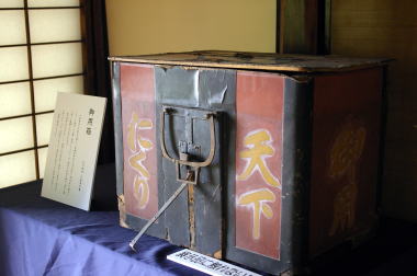 | 現在建物は座敷棟のみの公開であり残念ではあるが格式を感じさせる各所の意匠は見応え十分である この棟は1774(安永2)年の建築 右は幕府や藩の書状を運んだ御用箱と呼ばれるものである |