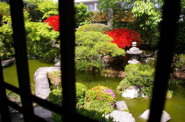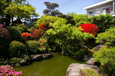 | 千葉家で特筆されるものは庭である 折しも躑躅が満開であり池や立石などを絶妙に配した美しい庭園である | |