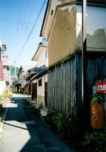 | 陣屋跡から町役場に向う道筋にある土塀に囲まれた旧家 | 町役場から駅方面に向った辺りにも、横小路にはこのような風景が残っていました。 |