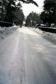 | 黒板塀と長屋門。秋田県のほぼ中央、仙北平野北部に位置する当地の町並は、黒を基調とした家並が特徴である。この町は、江戸中期の領主芦名義勝に続き、佐竹北家が城下町として築いたもので、現在も碁盤の目状の整然とした町割を残している。 町並は自然を強く感じさせる独特の雰囲気を持っていて、武家屋敷の庭内にはしだれ桜、針葉樹、落葉樹をはじめさまざまな木々が配され、通りを歩いていても並木の中を歩くような清々しさが漂う。黒板塀の直線的ではあるがしかし機械的な感じのしない趣がさらにそうさせているのだろう。 この町並では四季が濃厚に感じられる。春の枝垂桜、夏の緑の木陰、秋の紅葉、冬の雪景色と移ろって行く。中でも冬は、黒と白の色彩の失われた、ツートーンの世界となり非常に独特で襟を正さしめるものとなる。 武家屋敷は何軒か公開されており、中でも青柳家は、その規模、意匠の端部にも行き届いた武家の威厳を感じさせるのに充分なものである。庭には雪国らしい屋根付きの井戸があり、離れの「ハイカラ館」には、機械文明が始まった頃の貴重な生活用具、玩具、嗜好品、什器等が展示され興味深い。 |
