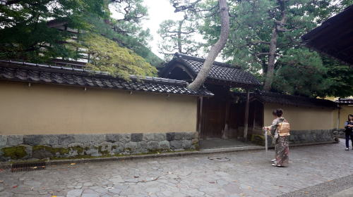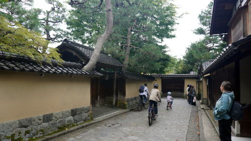 金沢を訪れた観光客の訪問先としては兼六園と双璧をなしているところといえる長町界隈。時に団体客の姿も眼にする。 金沢の城下町は城のある台地を中心として、それを取り巻く形で発達した。浅野川と犀川を天然の濠のごとく利用し、大規模な町場を形成していた。前田氏は関ヶ原の戦いにより功を得て、加賀藩は119万石もの超大藩となり越中や越前をも支配するところとなった。そのため城下町も広大で、各地に重臣の屋敷地が配置されていた。さながら小藩が分立していたようで、小型の江戸幕府といってもよいものであった。 武家屋敷も随所に配置されたが、現在も趣を濃く残すのはこの長町界隈のみである。武家町が状態よく残っている例は少なく、土塀の一部のみが現存する程度がほとんどであるが、ここでは連続性も保たれ、また長屋門の厳かな構えも旧態を留めている。しかもこの長町は下級武士が中心に住まう地区であったそうで、繁華街に程近いところにあることからも良くぞ残ったというべきであろう。他藩では、下級武士は長屋に住むことが多かったようだが、ここでは独立した邸が与えられていたそうだ。 小路に土塀が連なる風景が象徴的な眺めである。金沢城下町は度々大火に遭遇してきたが、この長町は江戸期を通じて一度も火災が発生していないとのことで、それだけに原型に近い町割や建築物が今に残されているのだろう。 武家地の風景のほかにこの地区を特徴づけるものに大野庄用水と呼ばれる水路がある。金沢城の築城の際に整備されたもので、金石港で陸揚げされた木材その他の資材を運ぶのに利用された。また武家地の生活用水、消火や融雪などにも使われ無くてはならない用水であった。現在も豊かな水量を誇っており、また武家地の風景に一層アクセントを添えるものとなっている。 |