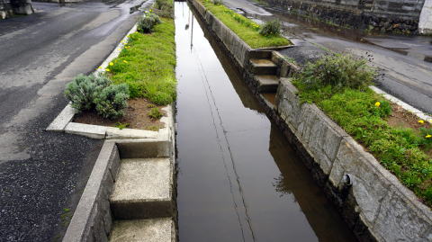 | 集落中央の水路が特徴の竹谷地区 | |