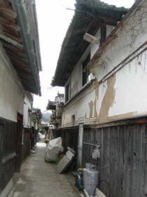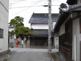 勝間田の旧宿場街。街路も比較的広く石畳調に改装され開放的な雰囲気の町並です。このような相当規模の屋敷型旧家も残っていました。 |